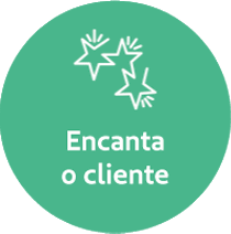 Unimed Fesp sticker with stars and 'Encanta o cliente' message, representing customer delight and competence evaluation.