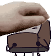 Animated pixel art sticker of Untied Shoe from Trial By Fire, a hand holding a box with a face.