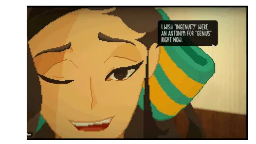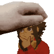 Cathy's pixel art sticker featuring a stylized head with a hand resting on it, in dark, warm tones.