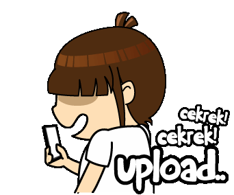 a cartoon of a girl holding a cell phone with the words cekrek below her