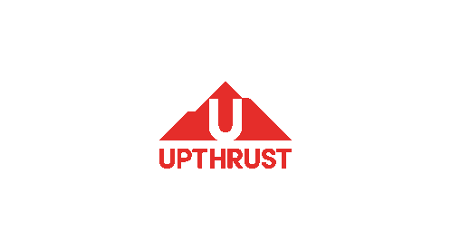An animated sticker featuring the Upthrust logo and a rocket, symbolizing ambition and world domination.