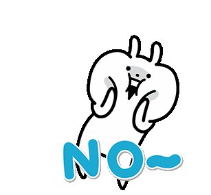 Usagyuuun, the energetic and expressive character, emphatically says 'NO~' with a distressed look and hand gestures.