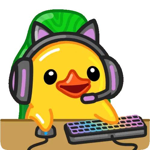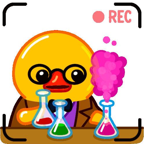 a cartoon duck is sitting at a table with beakers and smoke coming out of them and the word rec is on the bottom