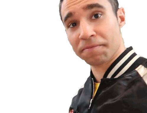 a man in a black and white jacket making a funny face