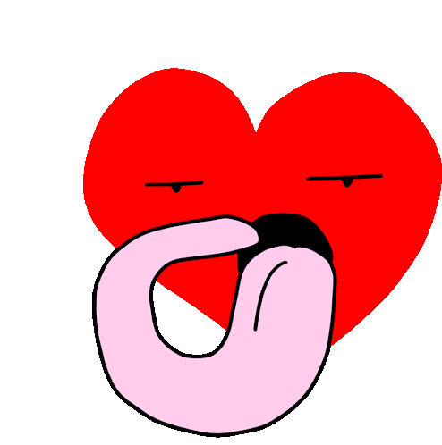 Ana Curbelo's cartoon heart shows extreme disgust, sticking out a pink tongue in a 'grossed out' expression.