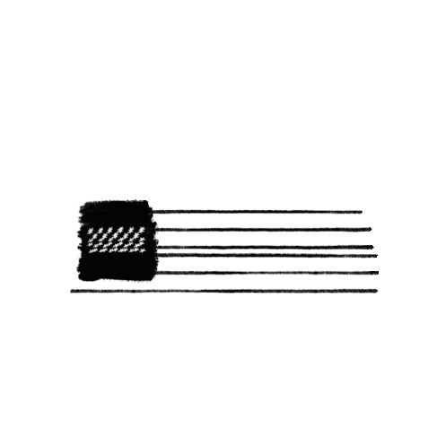a black and white drawing of an american flag on a white background