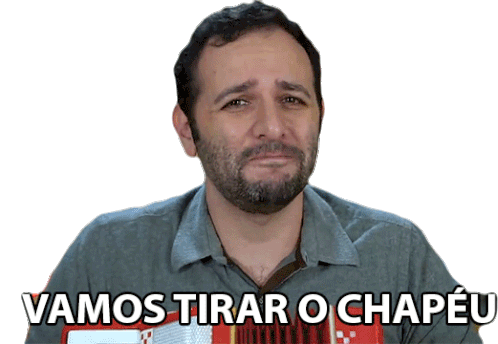 a man with a beard is crying with the words vamos tirar o chapeu above him