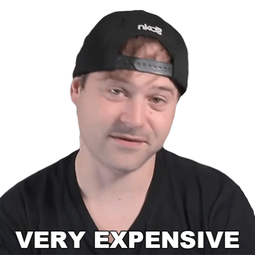 Jared Dines reacts with a 'Very Expensive' caption, emphasizing the high cost of something with a slight smirk.