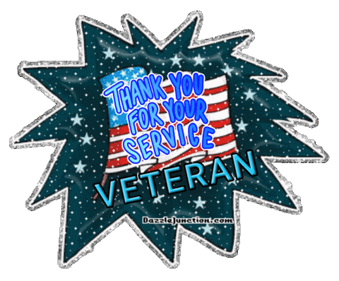 An animated graphic expressing gratitude and appreciation for veterans and service members, including medical and police.