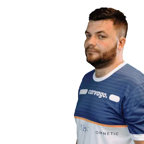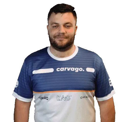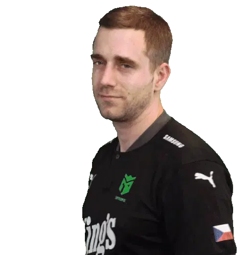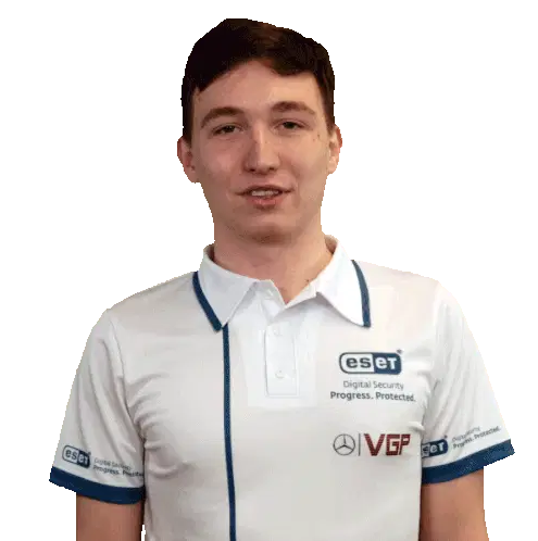 Tomas Koreny, representing VGP Virtual GP, smiles confidently in his ESET branded polo shirt with arms crossed.