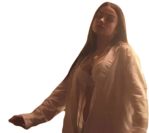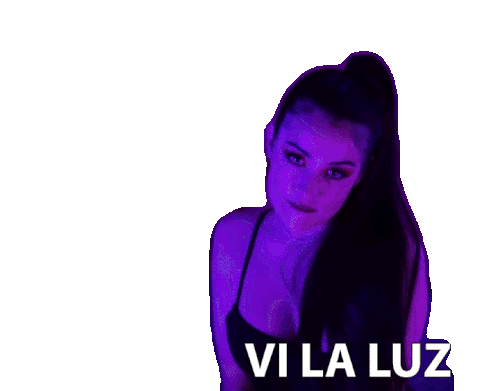 a woman in a black top is dancing in a purple light with the words vi la luz written on the bottom .