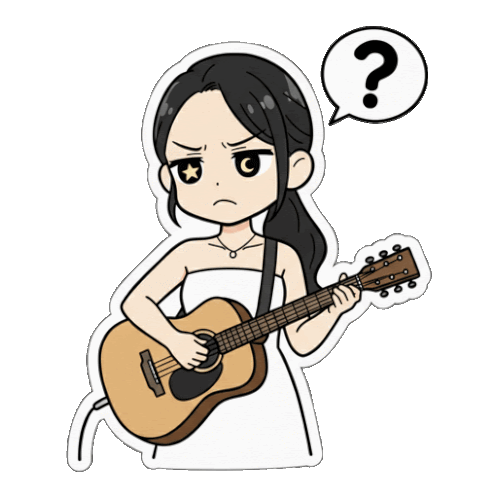 a cartoon of a woman holding a guitar with a question mark above her