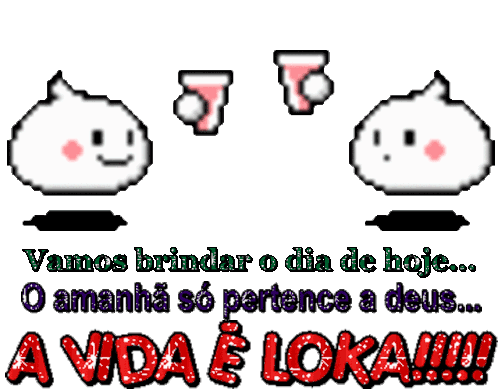 Two pixelated characters toast to the day, embracing the philosophy 'A Vida é Loka!!!!' (Life is Crazy!!!!) with a celebratory vibe.