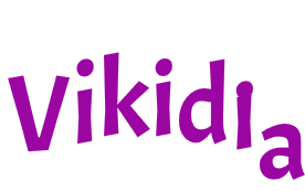 The word 'Vikidia' in vibrant purple text animates onto a white background, representing an educational platform.