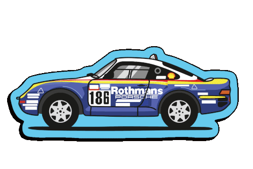 a cartoon drawing of a blue rothmans porsche car