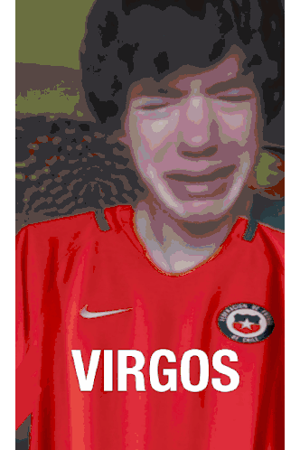 Emotional Chilean football fans, some crying, wearing red jerseys with 'VIRGOS' text, capturing a meme moment.