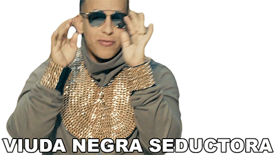 Daddy Yankee claps his hands with a seductive expression, featuring the text "Viuda Negra Seductora".