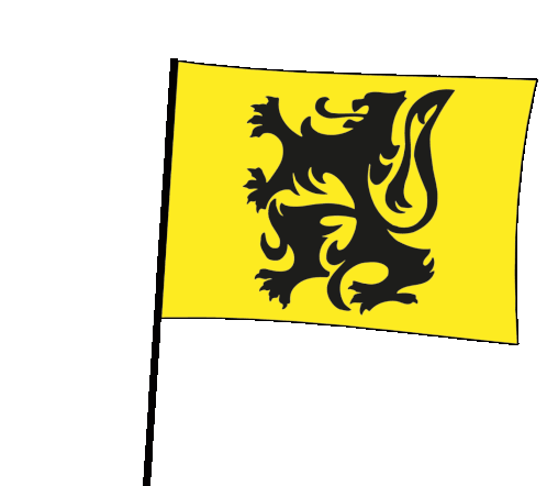 Waving yellow flag featuring the black rampant lion of Flanders, representing the Vlaamse Leeuw and Vlaams Belang.