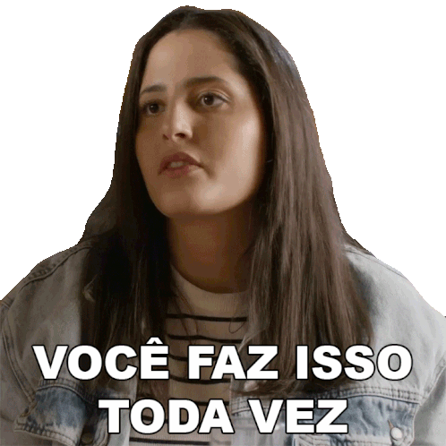Macla Tenório, wearing a denim jacket, expresses frustration with the phrase 'Você Faz Isso Toda Vez' (You Do This Every Time).
