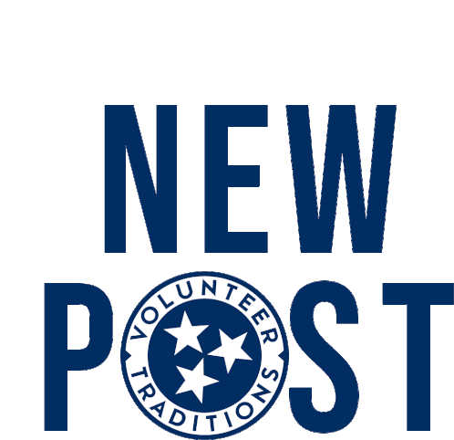 A bold blue graphic featuring 'NEW POST' text with the Volunteer Traditions logo, showcasing the Tennessee Tristar.