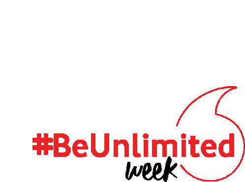 Vodafone's #BeUnlimited Week campaign sticker, featuring the iconic red speech mark logo and promotional text.