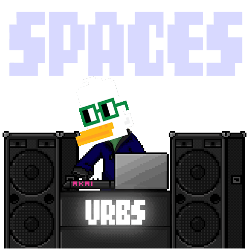 a pixel art of a duck sitting at a table with a laptop and the words urbs on it