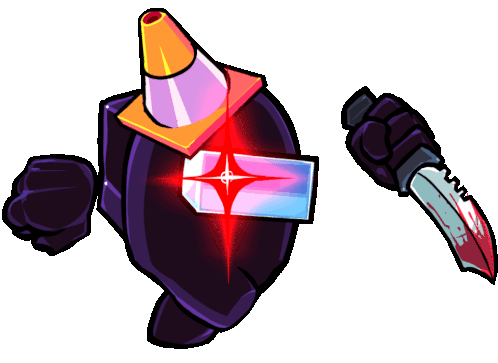 Black Imposter from Vs Imposter Fnf, wearing a cone and holding a bloody knife, ready for action.