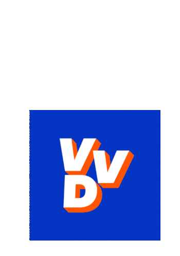 Animated VvD logo sticker, a blue shape with white and orange letters that rotates and morphs.