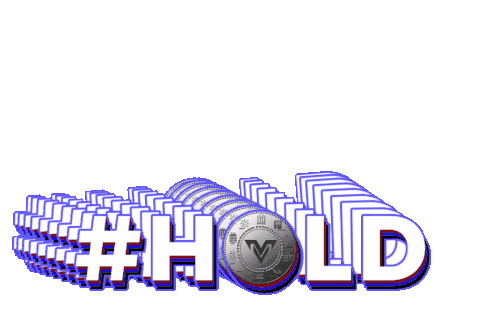 Animated sticker featuring the word #HOLD with a VVM Coin, showcasing a layered 3D effect.