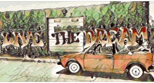 a drawing of a car with the words " live the dream " written on it