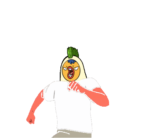 Animated Wagmis character, with an angry expression and mohawk, running with fists clenched, embodying hype and urgency.