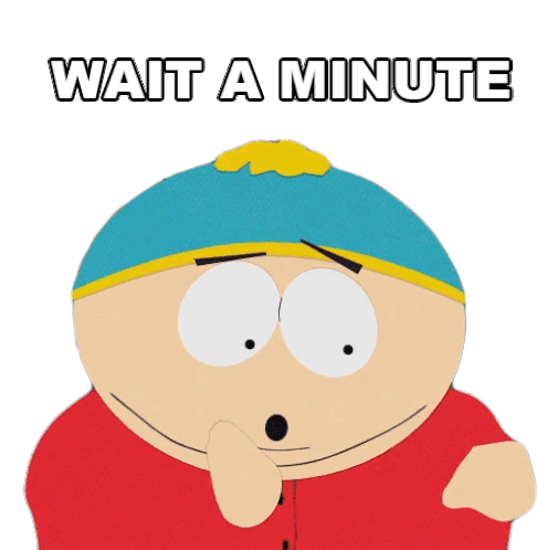 Eric Cartman from South Park looks surprised and says 'WAIT A MINUTE' in this animated sticker.