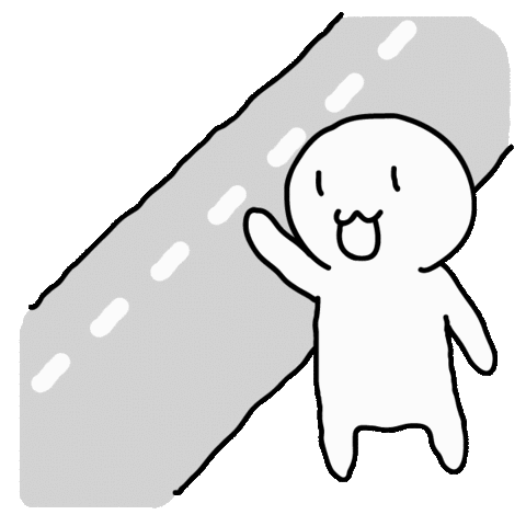 A cute cartoon character waves for a taxi on the roadside, then waits patiently as it approaches or passes by.