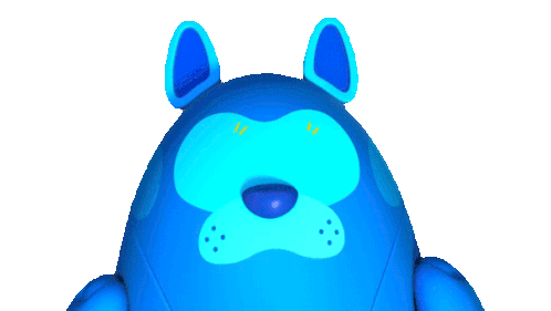 Deebo, the blue dog-like character, wakes up as his eyes light up with a colorful loading animation.