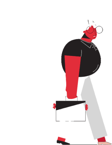 An animated character with a briefcase performs a walk cycle, symbolizing the daily commute and going to work.