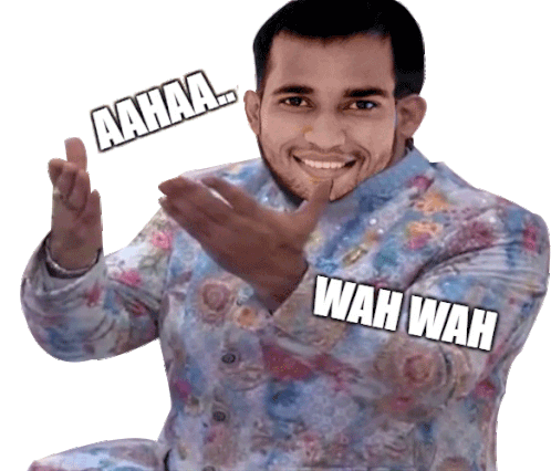 Wamdood claps his hands with a big smile, featuring the captions "AAHAA.." and "WAH WAH", expressing approval.
