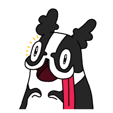 An excited cartoon dog with wide, sparkling eyes and a long tongue expresses strong desire and hope.