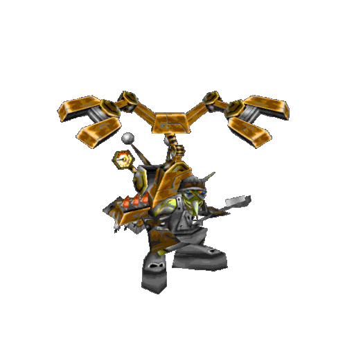 The Goblin Tinker from Warcraft 3 animates, preparing to launch rockets or use a mechanical ability.