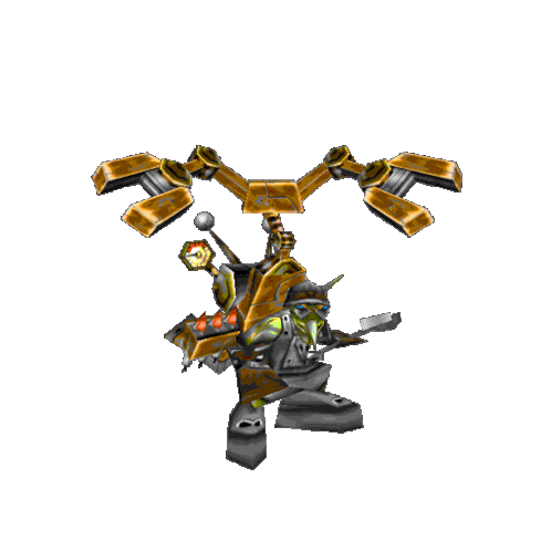 A Warcraft 3 Goblin Tinker unit in an attacking pose, ready for battle with its mechanical arms.