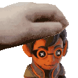 An armored hand gently headpats Warframe character Volt, with Amir Beckett present, creating a sweet and affectionate moment.