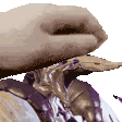 An animated sticker featuring a close-up of a person's hand holding a distinct purple object from Warframe.