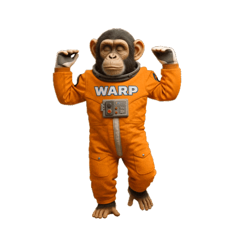 a chimpanzee wearing an orange space suit with warp on it