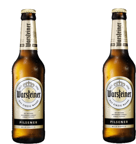 Two cold Warsteiner Pilsener beer bottles stand side by side, ready for a refreshing toast.