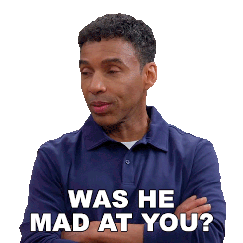CJ Payne from House of Payne asks, 'Was he mad at you?' with a concerned and thoughtful expression, arms crossed.
