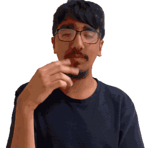 a man wearing glasses and a black shirt is making a gesture with his hand