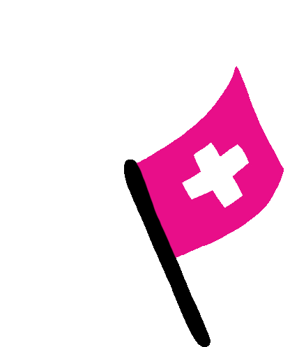 Animated sticker featuring a pink Swiss flag with a white cross, representing Watson News and Switzerland.