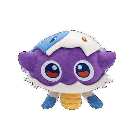An adorable animated plush toy of Wave Whisker from Teamfight Tactics wiggles playfully, showcasing its purple body and shell.