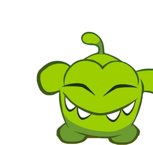 Om Nom, the adorable green monster from Cut the Rope, waves hello with a cheerful, wide smile.