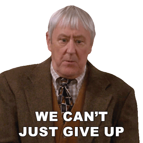 Alan Cornwall from Frasier, wearing a suit and tie, delivers the determined message: 'We can't just give up.'