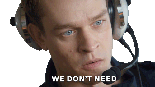 Thomas Elms as Nowak from Skymed, wearing a headset and saying 'We don't need to do it like this,' expressing disagreement.